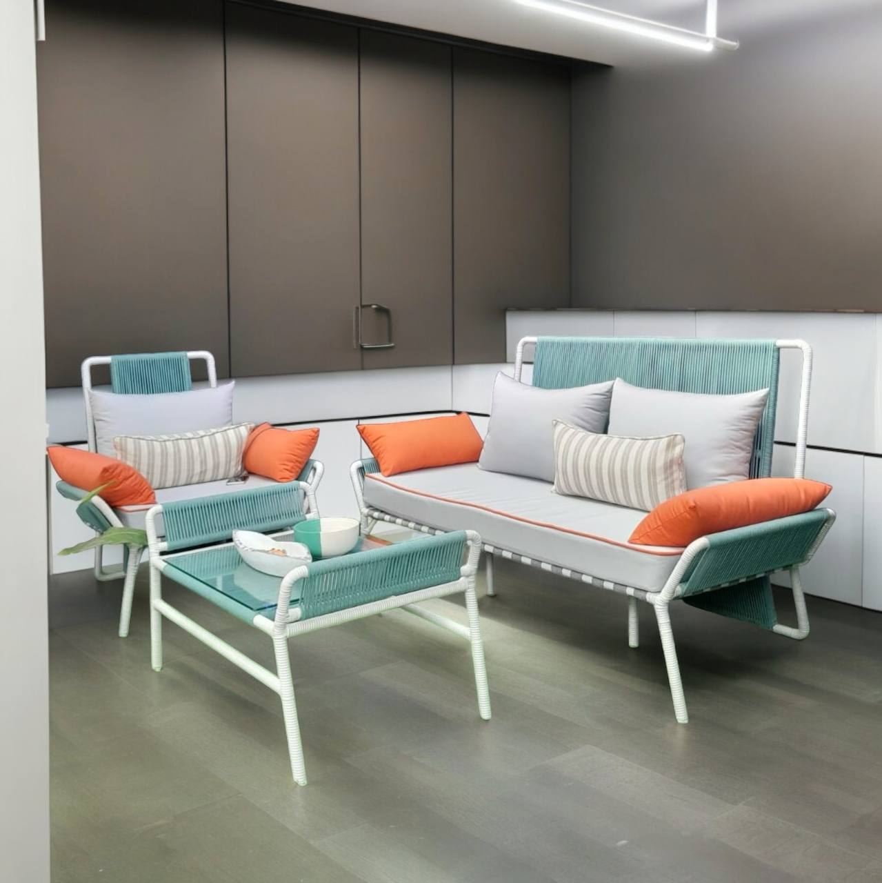 The Alba Sofa Set by Minimal Stroke is a vibrant and contemporary collection designed to bring a touch of modern elegance to any indoor or outdoor setting. This set combines sleek design with exceptional comfort, making it a perfect addition to your living spaces.