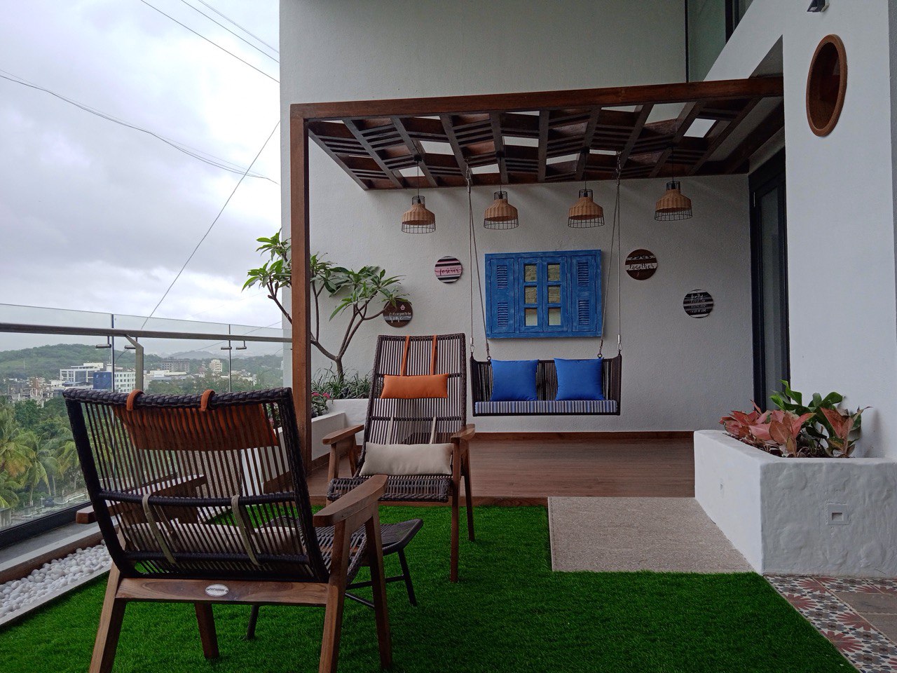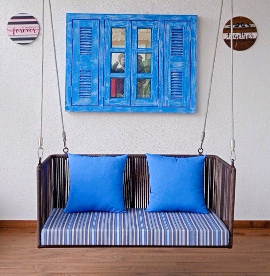 - Cushioning: Featuring cushions in a vibrant blue, the Osho Swing brings a pop of color to its surroundings. The seat cushion has a sophisticated striped pattern, adding a touch of contemporary flair to the overall design.